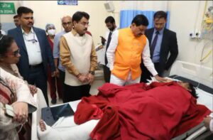 भोपाल । मुख्यमंत्री डॉ. मोहन यादव मंगलवार शाम को भोपाल के हमीदिया अस्पताल पहुंचे। यहां उन्होंने इमरजेंसी विभाग में और आईसीयू में हरदा हादसे में घायल हुए लोगों से मुलाकात कर उनका हाल-चाल पूछा। CM ने घायलों के शीघ्र स्वस्थ होने की कामना की। उन्होंने डॉक्टरों को घायलों के अच्छे से इलाज के निर्देश दिए
