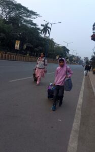 रेलवे स्टेशन से यात्रियों को अपने गंतव्य तक जाने के लिए जी जान लगाना पड़ गए ।छोटे छोटे बच्चों को गोद में लेकर, हाथों में बड़े बड़े सूटकेस लेकर यात्री खुले रास्ते की तलाश में पैदल ही निकल गए क्योंकि मैराथन दौड़ जो चल रह थी ।